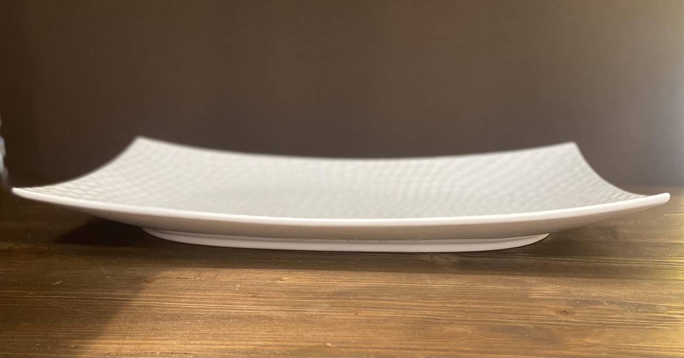 vassoio in porcellana rettangolare avorio a nido d'ape 40,5cm x 24,5cm