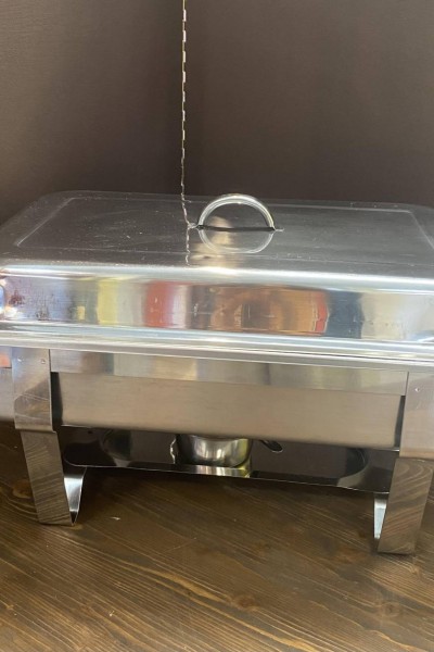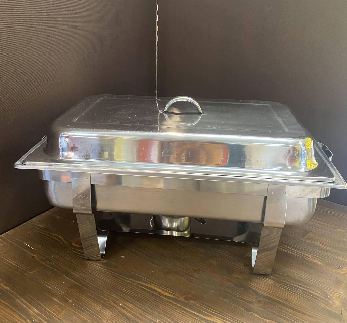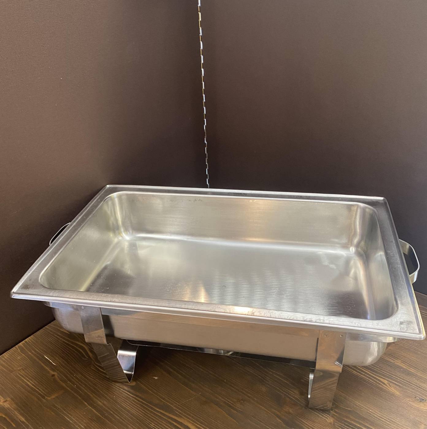 scaldavivande rettangolare funzionante con carburante gel nel fornellino di appoggio (da noleggiare separatamente). da usare con teglia gastronom 1/1 (non inclusa)
