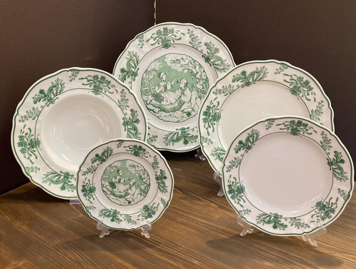 - sottopiatto Mon Amour diametro 32cm - piatto piano Mon Amour diametro 26,5cm - pastabowl Mon Amour diametro 26,5cm e profondità 5cm - piattino dessert Mon Amour diametro 20,5cm - piattino pane Mon Amour diametro 16cm