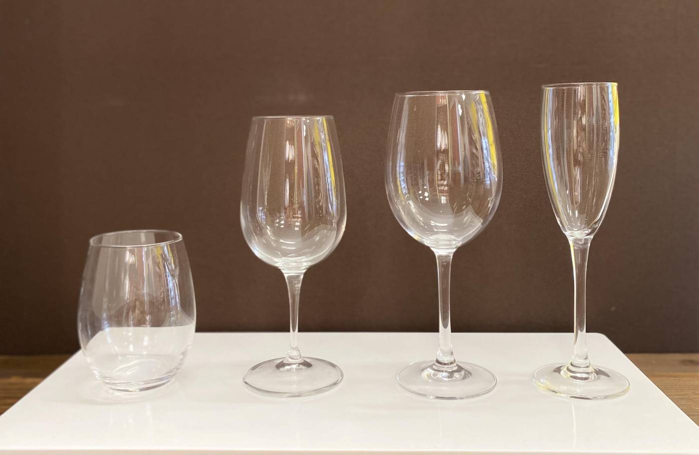 - tumbler acqua - calice vino bianco - calice vino rosso - flute