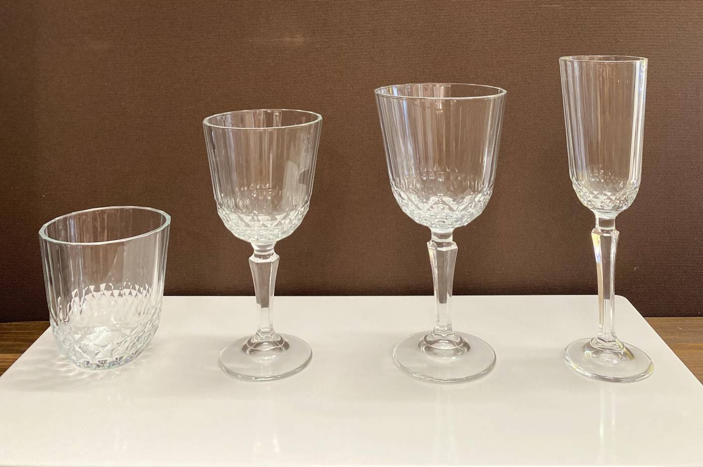 - tumbler acqua - calice vino bianco - calice vino rosso - flute - tumbler verde e tumbler blu (vedi foto)